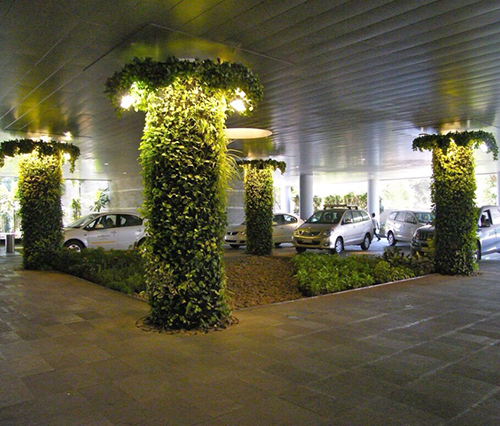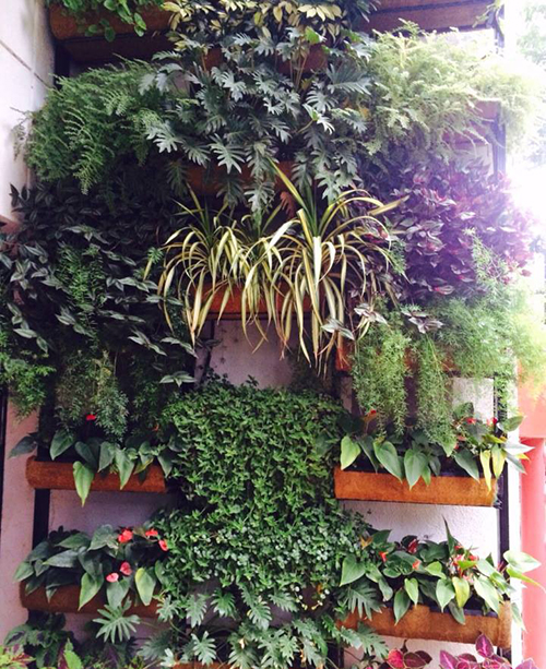 compound walls with different thematic coloured plants. These vertical gardens can be developed in semishade and full light areas.
